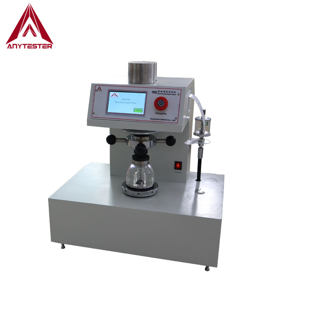 HY032D -тест прочности разрыва используется для определения прочности разрыва и разрыва на растяжение текстильных тканей гидравлическим методом. Испытательный образец зажимается над экспансивной диафрагмой с помощью кругового зажима. Увеличение гидравлического давления применяется к нижней стороне диафрагмы, вызывая растяжение диафрагмы и ткани. Объем жидкости увеличивается с постоянной скоростью за единицу времени, пока не всплывает испытательный образец. Разрывная сила и разрыв растяжения определены.