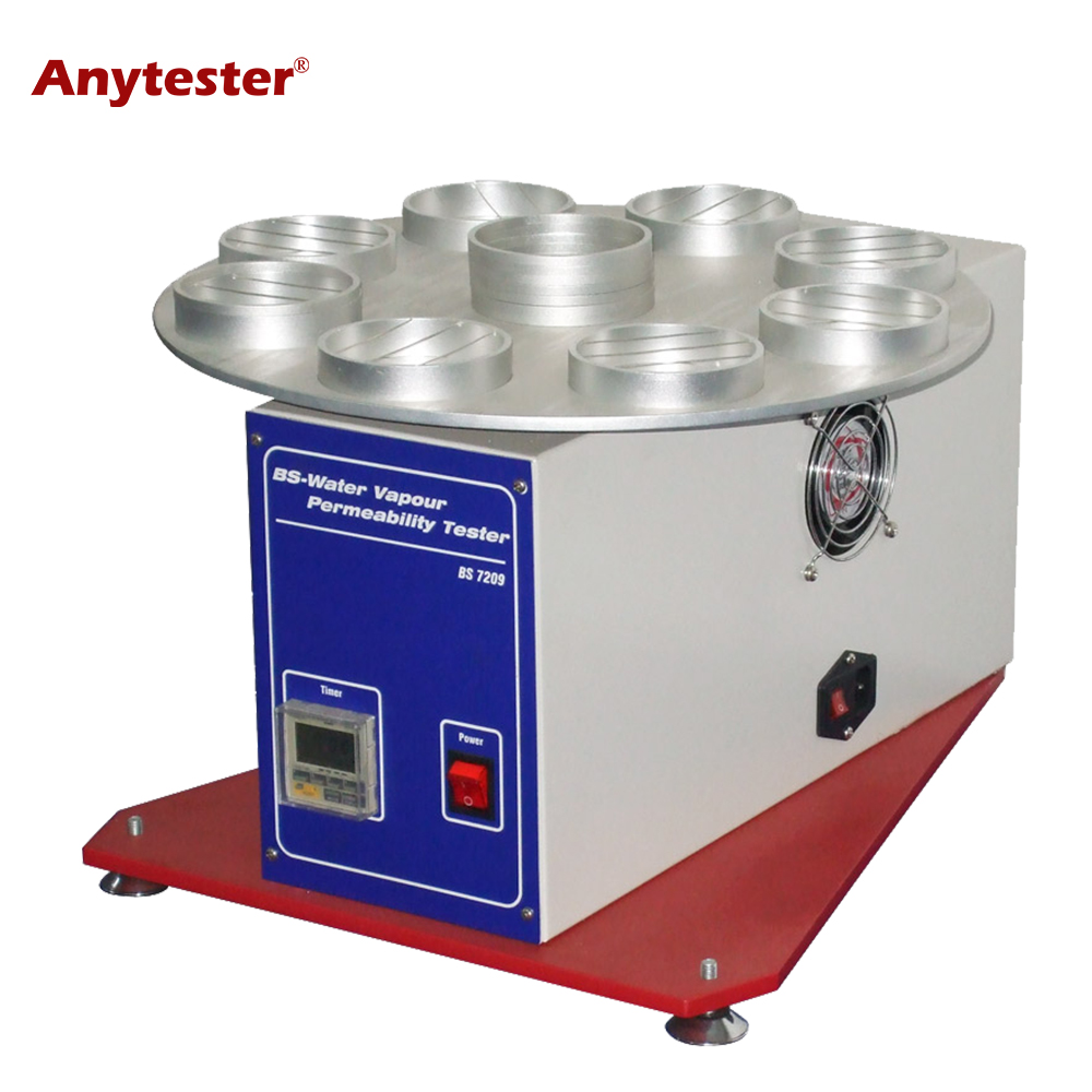 Этот прибор оснащен восемью тестовыми контейнерами и стандартной крышкой ткани для проницаемости паров, кольцом держателя образца и системой точного привода. В среде постоянной температуры и влажности образец был покрыт в блюде с выбросом воды, через определенное время водяной пары пересекают с фиксированной площадью образца, проведите вес водяного пара и рассчитанные пары через скорость и воду Индекс передачи паров.